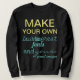 Vous pouvez créer votre propre sweatshirt en cliquant sur le bouton Customiser. Le texte que vous voyez maintenant sur le T-shirt noir est composé de plusieurs objets texte. Il suffit de cliquer sur x pour les supprimer un par un ; puis ajoutez votre propre texte en utilisant les polices fournies par Zazzle. Vous pouvez aussi télécharger une de vos propres images.