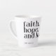 Taille : Petite Mug en latte Si vous aimez boire du café un latte, pas seulement un peu, alors cette tasse est pour vous! Élégant et prêt à personnaliser, il deviendra facilement un élément essentiel de votre journée. Disponible en 12 onces ou 17 onces Dimensions : 12 onces : 4 po h x 3,5 po diamètre 17 onces : 6 po h x 3,5 po Diamètre Forme conique avec poignée en forme d'oreille Sécurité des micro-ondes et du lave-vaisselle Construction céramique solide Satisfait aux exigences de la FDA en matière de salubrité des aliments et des boissons