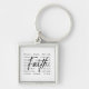 Set against a white background, this keychain features the word “faith” in soft, flowing script that stretches confidently across the center. Behind it, filling the space beneath the main word, are all-lowercase typewriter-style words—each one a reflection of faith’s many facets. Words like trust, hope, peace, truth, and belief stand out in uniform rows, creating a textured backdrop of conviction and clarity. The layered typography creates both contrast and cohesion. It's a visual meditation on what faith is made of—simple, striking, and quietly powerful.