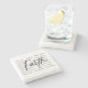 Set against a white background, this stone coaster features the word “faith” in a soft, flowing script that stretches confidently across the center. Behind it, filling the space beneath the main word, are all-lowercase typewriter-style words—each one a reflection of faith’s many facets. Words like trust, hope, peace, truth, and belief stand out in uniform rows, creating a textured backdrop of conviction and clarity. The layered typography creates both contrast and cohesion. It's a visual meditation on what faith is made of—simple, striking, and quietly powerful.