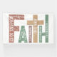 A bold, distressed rendering of the word FAITH becomes a canvas for sacred verses, each letter infused with biblical truth. From Romans to Matthew, the design invites reflection on the foundations of belief, grace, and divine promise.