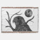 Schwarz-Weiß-Kunstwerk eines Wanderfalke mit Vollmond und Baumzweigen. Verwenden Sie die Textvorlage, um dem Mond ein Initial- oder Monogramm hinzuzufügen. ♡ Idyllfire