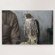 Foto-Puzzle eines verblendeten Falken verwendet für Falken auf dem Handschuh eines Falkenspielers in Doha, der Hauptstadt des Golflandes Katar.