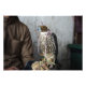 Foto-Druck eines mit Jalousie gefalteten Falken, der für Falken auf dem Handschuh eines Falkenspielers in Doha, der Hauptstadt des Golflandes Katar verwendet wird.