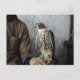Postkarte eines verblindeten Falken, der für Falken auf dem Handschuh eines Falkenspielers in Doha, der Hauptstadt des Golflandes Katar, verwendet wird.