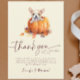 Diese niedliche Babydusche-Dankeschön-Karte zeigt eine rustikale Abbildung eines Kürbisses mit niedlichem Welpe mit bunten Herbstlauben. Ideal für eine geschlechtsneutrale Babydusche während der Herbst- und Erntedank-Saison.