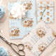 Blau und beige Wrapping Paper Sheets für einen Jungen mit einem zauberhaften Teddy in einem Hut, Kürbis und Herbst Pflanze. Personalisieren Sie den Text einfach. Kate Eden Art