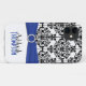 Personalisiertes modernes königsblaues, schwarzes und weißes Damaskop Case-Mate Barely There™ iPhone 5 Gehäuse mit DRUCKBändern und schmuckbrauner Fibel.