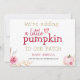 Partagez l'excitation de cette saison d'automne avec notre Faire-part bébé de la Grossesse Reveal. Avec le message charmant "Ajout d'un petit Citrouille au Patch", cette carte dégage chaleur et anticipation. L'herbe boho pampas et l'adorable citrouille encadre la photo de votre petit, ce qui rend ce faire-part spécial. Faites preuve d'esprit d'action de grâce et célébrez l'arrivée de votre petit citrouille avec vos proches pendant cette saison joyeuse.