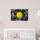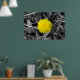 Dieses Poster ist mit einem hellgelben Kronleuchter und einem Schwarz-Weiß-Hintergrund aus Herbstlauben und Gras versehen.