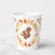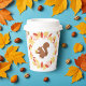 Ein glückliches Gießereihörnchen hält eine begabte Nuss aus der reichen Herbsternte. Blätter von Zitronengelb, verbranntem Siena und Korallen schmücken die Szene.