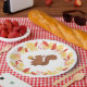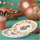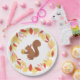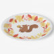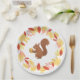 Ein glücklich gebendes Eichhörnchen hält eine begabte Nuss aus der reichen Herbsternte. Blätter von Zitronengelb, verbranntem Siena und Korallen schmücken die Szene.