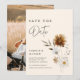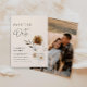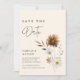 Moderne Script Save the Date Card. Entworfen mit einer schönen Aquarell Gold Champagner Flasche. Passende Artikel in unserem Shop Cava Party Design.