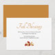 Erntedank Verlasse Grußkarte mit einem eleganten goldenen Schrift fallfoliage Design. Mit Gold und schwarzem Text können Sie Ihre eigenen Informationen hinzufügen. Die Rückseite der Einladung hat eine passende Farbe, die mit der weißen Abdeckung kontrastiert. Dieser Artikel passt gut zu anderen Herbstseglern-Produkten in meinem Shop. Ideal, um gute Wünsche an Freunde und Familie diesen Erntedank zu senden.