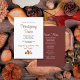 Freundliche Dinner Einladung mit einem eleganten Drehbuch und elegantem Blattdesign. Mit rot und schwarz Typografie Schriften, können Sie mit Ihren eigenen Informationen anpassen. Die Rückseite der Einladung hat eine passende rot-bordeauxfarbene und eine Menübeschreibung für Ihre Gäste. Eine stilvolle Einladung für Ihre moderne Erntedank-Feier.