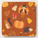 Celebrate the warmth and whimsy of autumn with Fall Friends — a cheerful gathering of woodland pals and harvest icons. Playful turkeys, squirrels, and hedgehogs mingle among pumpkins, pears, acorns, and falling leaves on a rich copper background. Perfect for Thanksgiving or any cozy fall day, this design brings friendly charm to kitchens, dining rooms, and seasonal décor alike.