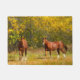 Zwei Kastanienpferde gegen einen goldenen Falllaubhintergrund stellt dieses eine wirklich spezielle Zuhausetürmatte her.