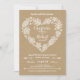 Elegant dennoch lässig, ist diese Hochzeits-Einladung für jeden möglichen Naturliebhaber perfekt. Stylized Spitze-Blätter, -pinecones, -eicheln, -pfeile und -Blumen bilden ein Herz mit einem rustikalen Packpapier-Blickhintergrund. Fertigen Sie mit Ihrem eigenen Text besonders an. Ursprüngliche Illustration durch pj_design. Bitte Karo mein Speicher für eher wie dieses.