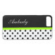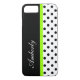 Benutzerdefinierte Monogramm-Smartphone-Hüllen mit elegantem Schwarz-Weiß-Polka-Dots-Muster und hellgrünem Modestreifen, die Sie anpassen können, sowie Name-Drop-Platz, den Sie selbst erstellen können, indem Sie den Vorlagennamen durch Ihre eigenen Monogramm-Initialen ersetzen. Lasse, dass Sie Ihr Handy stilvoll tragen.