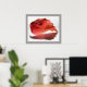 Starrer roter Blatt hinterbeleuchtet mit Sonnenlicht, fotografiert auf reflektierenden weißen Fliesen. Mit dekorativen Rahmen. Erhältlich in verschiedenen Größen mit oder ohne Rahmen. Von Dwight Bennett von Natureworld Art.