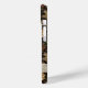 Customize this fall leaves camouflage iPhone 15 case with your name in a trendy modern CAP font in brown on opaque cream. It's masculine and perfect for your favorite military, hunting, country or outdoorsman!
