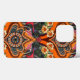 Ursprünglich in Tinte gezeichnet, Retro-Stil Blumen in Henna, grün, lila und Russ verfügbar.