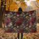 Fall Moody Peony Burgundy auf Dunkelgraublümchen Fleecedecke