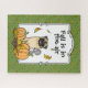 Herbst Mops - Niedlicher Cartoon Mops Hund, umgeben von herbstlichen Blättern, Kürbissen, Kiefernzapfen und fröhlichen Eichhörnchen mit Eichel. Copyright © Angi Laframboise. Hundeschenke für Hundeliebhaber zu jeder Jahreszeit und im Urlaub.