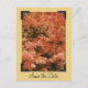 Ankündigen Sie Ihre kommenden September, Oktober oder November Nuptials mit den natürlichen Fall Orange Blätter Hochzeit Speichern Sie das Datum Postkarte. Diese individuelle Herbstehe behalte die Dattelkarte mit einem digital bemalten Naturfoto eines Baumes voller leuchtend orangefarbener Herbstblätter.