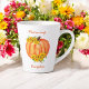 Orange Pumpkin Erntedank Latte Tasse mit Watercolor Sonnenblumen auf Pumpkin. Herbst Housewärming Geschenk Erntedank Geschenk, freundliches Geschenk. Sie können Text auf der links, rechten und mittleren Tasse personalisieren.