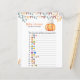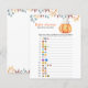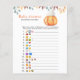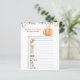 "Ein kleiner Kürbis ist unterwegs. Feiern Sie mit diesem Baby Cartoon Kürbis Thema für Baby Dusche Party! Wasserfarbener niedlicher Cartoon Kawaii Kürbis mit Herbstmütze (Kappe) und Herbstlauben. Auf der Rückseite der Karte befinden sich Herbstblätter.