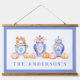 Die schicke Wandtapete ist mit 3 verschiedenen Ingwergläsern mit orangefarbenen Bögen und Kürbissen ausgestattet. Der Rand um die Karte ist ein blauer Rahmen. Sie können mit Ihrem Namen personalisieren.
