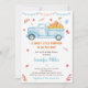 Diese Einladung enthält niedliche Herbstlaube und einen blauen LKW mit Heu und Kürbissen.