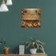 Dieses charmante Erntedank-Poster besticht durch einen rustikalen Holzboden, der an einen Herbsttisch erinnert. An den Ober- und Unterkanten sind lebendige Kürbis in Orange-, Weiß- und Grüntönen gehalten, ergänzt durch die in warmen Gelb- und Orangetönen gehaltenen Herbstpflanzen. Dieses Design vereint wunderbar die gemütliche Essenz des Erntedanks. Im Herzen des Posters ist der Gruß "Glückliches Erntedankfest" elegant gestaltet und fügt eine Touch von Eleganz hinzu. Darunter befindet sich ein individualisierbarer Bereich, in dem Sie den Text personalisieren können, um Ihren Familiennamen oder jede andere Nachricht anzuzeigen, was ihn zu einem einzigartigen Sake für Ihre Erntedank-Feiern macht. Der Text ist vollständig anpassbar, sodass Sie eine personalisierte und unvergessliche Saisondekoration schaffen können. Ideal, um Ihren Erntedank-Festen eine besondere Touch hinzuzufügen!