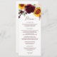 Fall Sonnenblumen Rose Burgundy Red Wedding Menu Menükarte