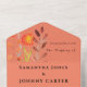 Herbst, Terrakotta, Herbst, Orangefarbene Blume, Boho, Chic All in one Einladung. Elegantes Land, rustikale Hochzeitseinladungen. Passen Sie Ihre Daten an. Bestellen Sie rechtzeitig, um eine Enttäuschung zu vermeiden.