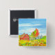 Ein fröhlicher Knopf für die Herbstsaison mit einer roten Scheune mit einem Kürbispflaster bereit für die Herbstdekoration und die Blätter ändern die Farben auf den Bäumen, gezeichnet in Farbe mit Aquarell. Spaß für eine Knopfsammlung, um Kunden zu geben und für Knopfwechsel!