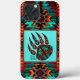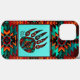 Dies ist ein einzigartiges "One of a Kind" Tribal Bären Paw Cell iPhone Case! Es verfügt über eine amerikanische Stammbärenpaw, die Schutz und gute Gesundheit darstellt, auf einem türkisfarbenen Hintergrund und umgeben von einer türkisfarbenen, orangen und schwarzen Grenze! Original Grafik Design von Künstler Kerry Miller.