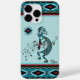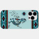Dies ist ein einzigartiges "One of a Kind" Southwest Kokopelli Cell iPhone Case! Es besitzt ein türkisfarbenes Kokopelli, das die Flute mit Musiknoten spielt und unter der Sonne auf einem türkisfarbenen Hintergrund tanzt...Umgeben von einer Südwestgrenze in Türkis, Weiß und Rost. Original Art Design von Künstler Kerry Miller.