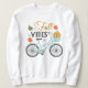 Das Design "Fall Vibes" ist eine charmante und skurrile Illustration, die die Essenz des Herbstes perfekt einfängt. Das zentrale Element des Designs ist ein Vintages Fahrrad, das in einer sanften, pastellblauen Farbe gerendert wird. Das Fahrrad hat einen klassischen Retro-Look mit geschwungenen Lenkern und einem an der Vorderseite befestigten Korb.