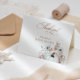 Dieses Design verbindet die rustikale Schönheit des Herbstes mit dem eleganten Minimalismus, mit einem weißen Kürbis, umgeben von weich weißen Blume und braunen Herbstblättern.