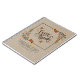 Coole Beige Kick-Töne Leinentextur mit Ahornblättern und Wirbel Vintagen Rahmen. Rezepte und Familienname für den Erntedank individuell einstellbar. Dunkelbraun - Dank extravagantem Textdesign.