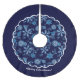 Dieser Weihnachtsbaumrock, der mit einer grafischen Abbildung von sanft fallenden, weichen, blauen Schneeflocken und Set vor einem blauen Hintergrund, der an den Winterhimmel erinnert, sowie einem marineblau-weiß-skallopierten Kreis, ist leicht zu personalisieren.