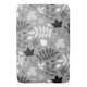 Autumnal gefallene Blätter in einem Oberflächenmuster-Design in Schwarz, Weiß und Grau auf einem grauen Hintergrund.