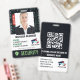 Medium sized vertical employee ID badge for your cyber security department, with a falling code background in green, cyan, and blue. Security is written at the bottom of the badge with a shield with a keyhole next to the text. Customize the security ID badge with name, title, department, ID number, issue date and expiration date, and logo. On the back, there's a QR code and additional customizable text.