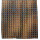 Das moderne, originelle Muster von ZoeSPEAK auf diesem Duschvorhang entstand aus einem Originalfoto eines goldgelben Meerestraubenblattes. Das Foto zeigt das Blatt, wenn es auf den Holzplatten eines Decks gelandet ist, nass von einer Morgendusche. Das Blatt fällt vor dem dunklen Hintergrund auf, der durch die glänzenden Nailheads und einen Tropfen Aquarellfarbe unterbrochen wird.