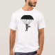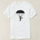 Schwarzes Piktogramm auf transparenten Hintergrund. Soldat mit Waffe an einem Fallschirm.