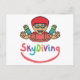 Ein lustiges Skydiving-Design zeigt einen Skydiver mit Helm, Brille, Daumen hoch und Beine, die sich hinter dem Skydiving-Team ausbreiten. Durch die Luft zu fallen, wartete für den richtigen Moment, um den Fallschirm einzusetzen. Das Wort "Skydiving" unter dem "g" verwandelt sich in ein großes Lächeln.