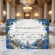 Versetzen Sie Ihre Gäste in ein romantisches Anwesen am See. Diese elegante Antwortkarte zeigt tiefe, blaue Aquarellblumen und einen malerischen Gartenblick, um die Stimmung vorzugeben. Dieses Design zeigt eine ruhige, symmetrische Aquarellillustration einer großen Steintreppe, die zu einem friedlichen See hinunterführt, komplett mit eleganten weißen Schwänen und einem kleinen Holzboot. Die Szene wird von üppigen Eckenarrangements mit königsblauen und marineblauen Rosen eingerahmt, akzentuiert mit kühlen grauen Schatten und gedämpftem grünen Laub. Der Hintergrund verwendet einen weichen, gedruckten Marmorsteineffekt, um Tiefe und Raffinesse hinzuzufügen, ohne die Kosten für schweres Kartonpapier. Dies ist ein flaches, gedrucktes Bild mit einem Faux-Marmor-Effekt, nicht echter, erhabener Stein
