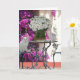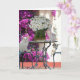 Eine anpassbare Karte mit Missy and Kitty Girl. Der Hintergrund ist mit violetten Blumen und Sitzmöbeln aus publicdomainpictures.net gestaltet. Sie können den Text anpassen und die Größe und Farbe des Schriftartes ändern. Die Gänseblümchen, die ich aus einem Foto von etwas extrahiert habe, das ich gekauft habe.